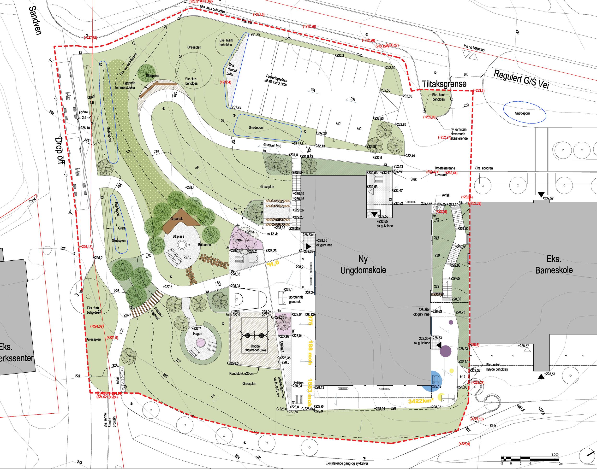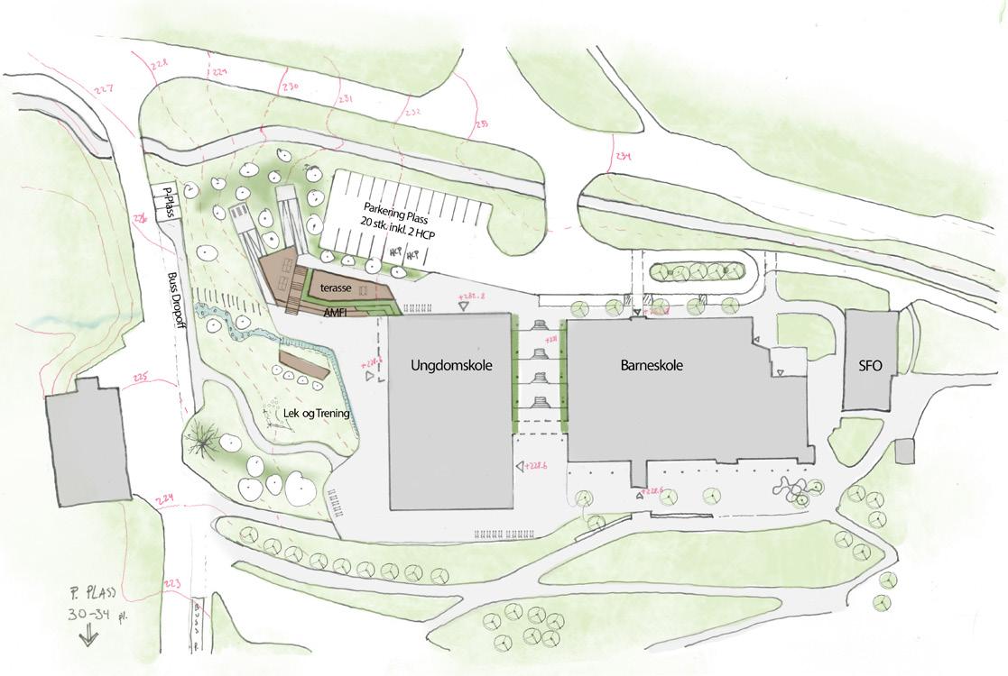 I have been working with this project from its inception in early sketch phases, holding stakeholder meetings with local students and school staff in the small village of Atrå. The previous school on the site built in the 1960’s provided almost no outdoor space for students, with large areas dedicated to vehicles.
