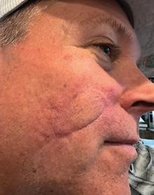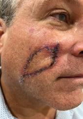 At this time, Dr. Endara said, “This isn’t about looking pretty anymore. It is time to go see a dermatologist.” Dr. Endara’s office scheduled an appointment with Dr. Robb, a board-certified dermatologist at the Skin & Allergy Center in Spring Hill, to remove a significantly larger portion of my husband's cheek.