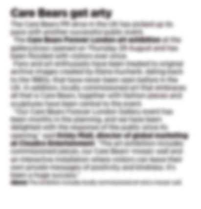“Our Care Bears Forever London Gallery event has been months in the planning, and we have been delighted with the response of the public since its opening,” said Kristy Miall, director of global marketing at Cloudco Entertainment. “The art exhibition includes commissioned pieces, our Care Bears’ mosaic wall and an interactive installation where visitors can leave their own private messages of positivity and kindness. It’s been a huge success.”