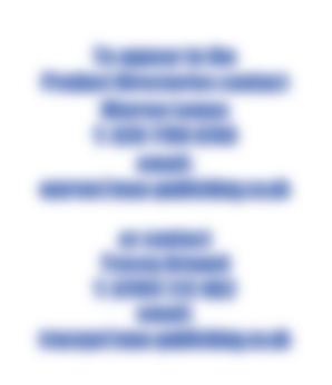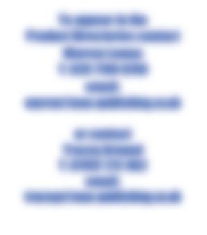 To appear in the Product Directories contact Warren Lomax T: 020 7700 6740 email: warren@max-publishing.co.uk or contact Tracey Arnaud T: 07957 212 062 email: traceya@max-publishing.co.uk