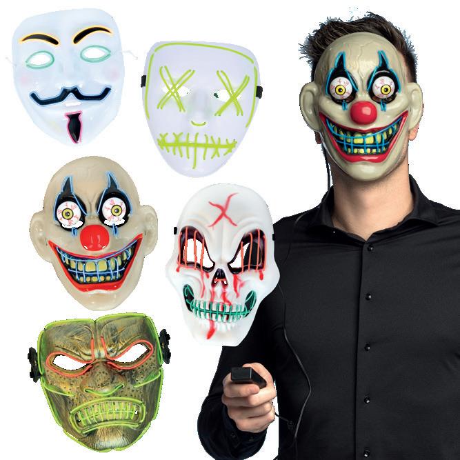 Boland has a large range of LED masks with nine designs on offer, putting another meaning to lighting up the night. Designs include Horror Clown and Black Rabbit.