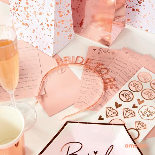 Be ready to say I do with Amscan’s Team Bride range. Comprising tableware, décor, balloons and wearables, the assortment’s on-trend colour palette is versatile to curate a unique bride to be experience. From tattoos to sashes, headbands and favours, mix with the rose gold metallic ranges for adding extra sparkle.