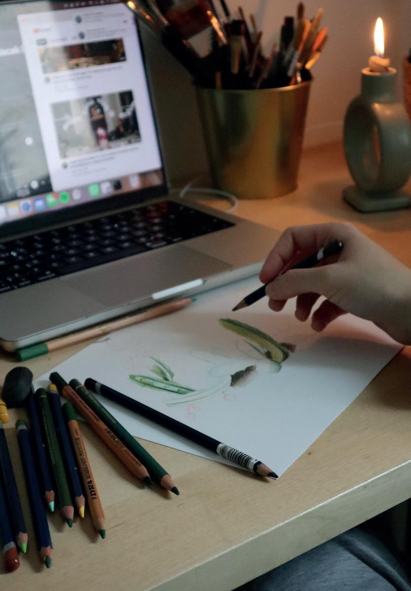 BELOW RIGHT: Viola Hortová (@viola. artstudio) gives live tutorials on social media showing her artistic process.