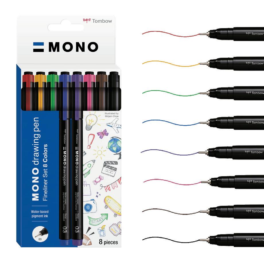 Designed for precision and reliability, the Mono drawing pen features a fine metal tip that captures the smallest details with clean, consistent lines. Its pigment-based, water-resistant ink provides rich contrast and lasting quality, while smudge resistance ensures flexibility when used with the ABT Dual Brush Pen and Fudenosuke. The range now includes colour options, available individually or in sets of eight.