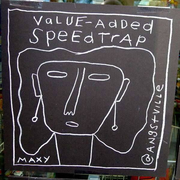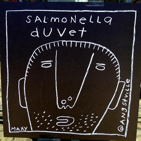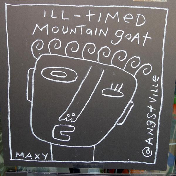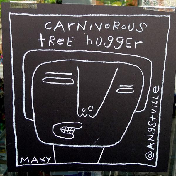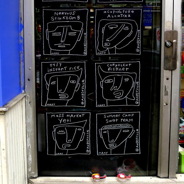 The artist is the creative force behind @angstville," a non-linear streetcomix featuring characters he's emblazoned on everything from sidewalks to store windows. The work evolved from creating sidewalk drawings with chalk to making pieces that people could take down and take home with them.
