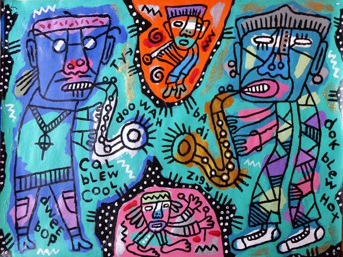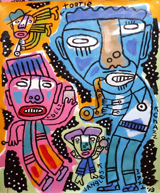 @angstville is the street artist incarnation of the Artist Maxy (aka Max Singer). His unique, colorful and bold imagery has been exhibited widely both in his homebase of New York City, in particular at such music and club venues such as the Knitting Factory, as well as various outsider and contemporary venues in his spiritual home of New Orleans, and was featured in the documentary Blood Brothers: Bruce Springsteen and the e Street Band. His work appeared in numerous national publications including high times, Psychology today, the NY times and NY Magazine, to name but a few and was featured in the Society of Illustrators landmark show and book the New Illustration. His political cartoons were featured in New York Newsday as well as high times. Along the way he created animated commentary for hard Copy tv news program, wrote sketches for SNL and was a standup comic at the Improv, NY. His homefront Comix was a prescient response to 9/11.