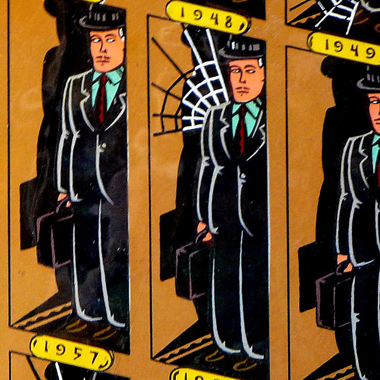 Max moved to New York in 1980 to become associated with Push Pin Studio. He was a nationally recognized editorial illustrator whose work was published in such venues as New York Magazine, Esquire and Rolling Stone and was chosen to appear in the Society of Illustrators’ landmark show and book The New Illustration. He taught briefly at Pratt and the School of Visual Arts, did standup comedy at the Improv, exhibited his paintings at Tramps and The Knitting Factory and organized the band Max Singer and