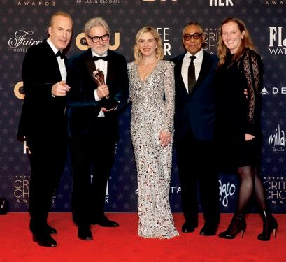 Bob Odenkirk, Peter Gould, Rhea Seehorn, Giancarlo Esposito y Melissa Bernstein, ganadores del premio a Mejor Serie Dramática por “Better Call Saul”.
