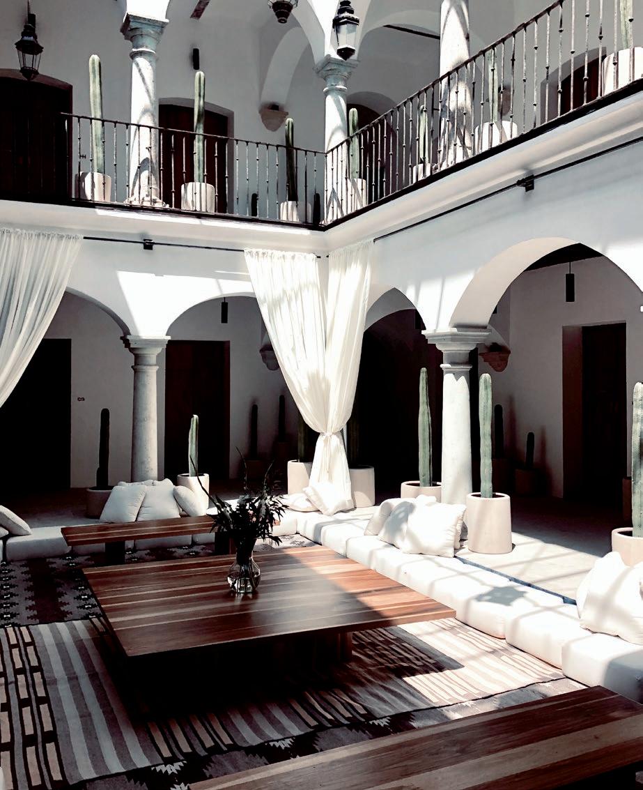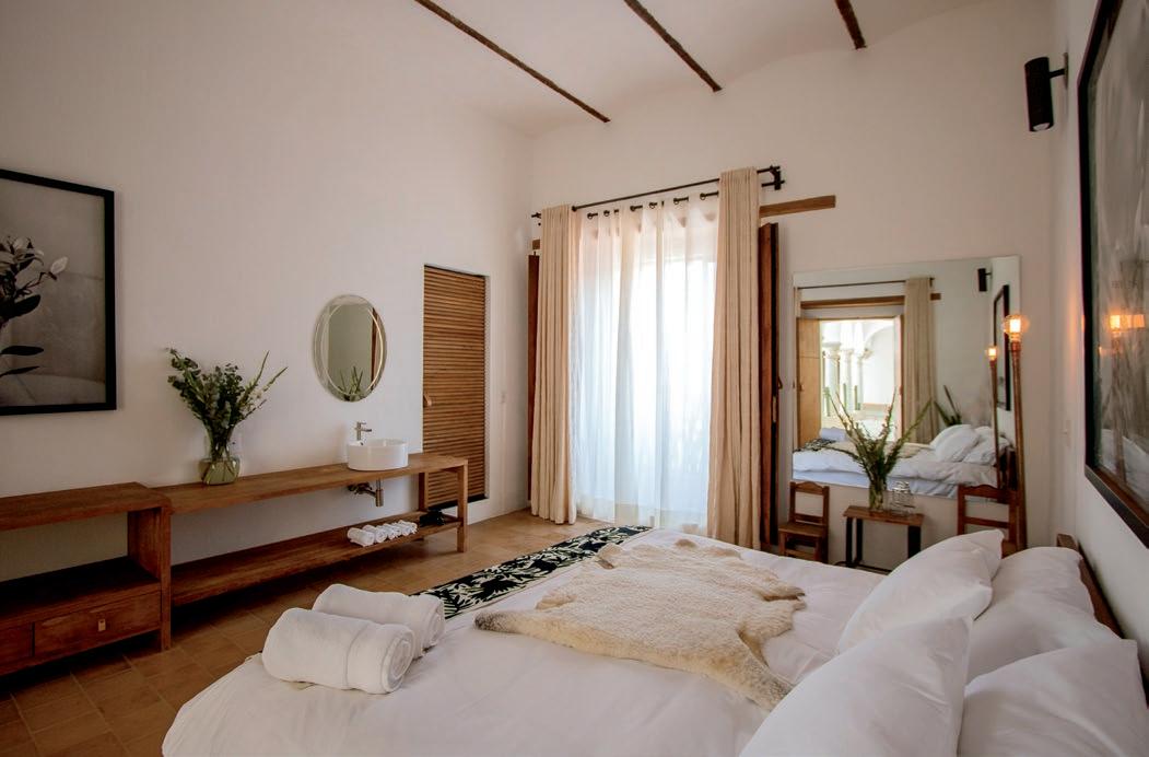 La audaz mezcla de texturas y acabados logran un aspecto vanguardista y artístico en todo los ambientes interiores, que abarcan desde el lobby, pasando por la piscina infinita con vista al océano, la terraza con su pérgola artesanal, las 10 “suites” con terraza y hasta los baños, cuyo carácter es minimalista por sus muros de vidrio con ducha de lluvia al aire libre.