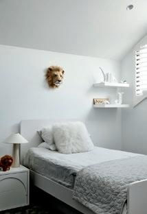 Con sus arquetípicas formas a dos aguas y la materialidad del hormigón colado in situ, la Casa Scandizzo genera una sensación de resistencia y estabilidad que se complementa a la perfección con la hermosa fachada victoriana original. La elección del material responde a la forma en que se pretende sentir el edificio, por tanto, el uso del concreto tiene gran significado no solamente por contribuir con una calidad robusta, sino que en su crudeza y la naturaleza orgánica de su materialidad logra transmitir pesadez y ligereza al mismo tiempo.