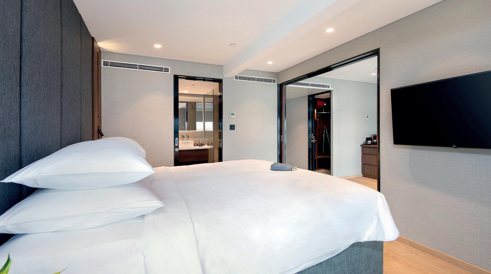 ■ Queen-size or twin hotel-style beds draped in sumptuous linens