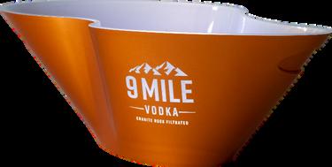 LED VELA BOWL „RoUND“ in CHROM with single-sided 9 MILE Vodka Branding