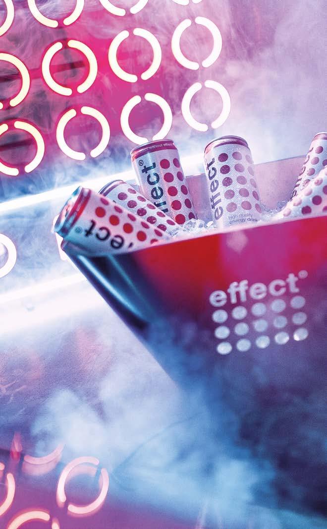 The unmistakable effect® CLASSIC Energy flavour was created in our innovation lab using highquality ingredients and a unique recipe. It was the first variety to feature the stylish effect® label, which first appeared in 2002. The can with the 15 red dots is now causing a stir in 57 countries around the world. Unique developments have since spawned from this core. And there are more to come.