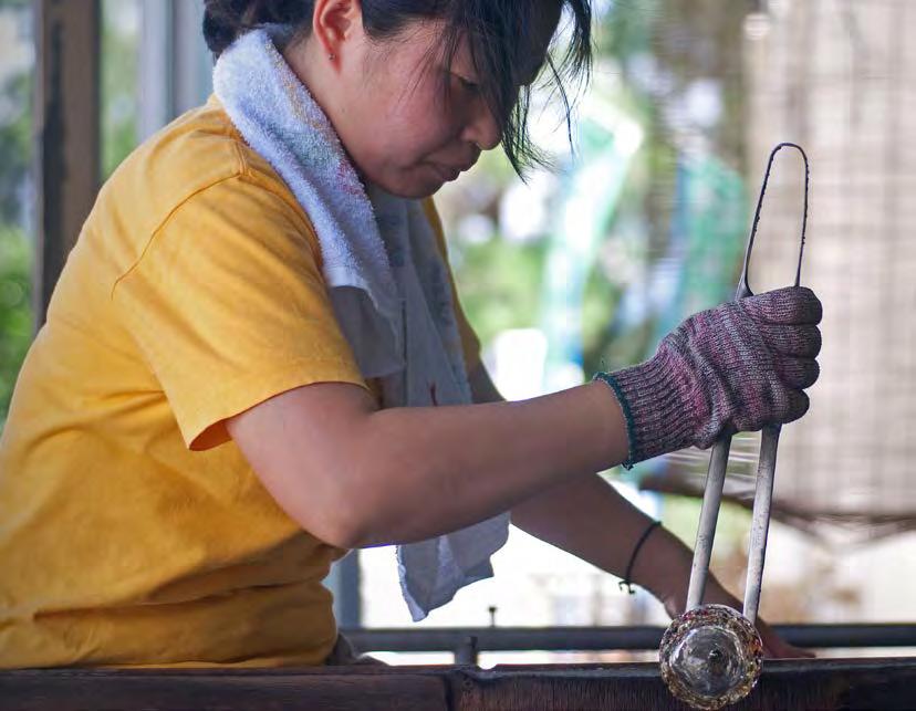 But Ryukyu glass doesn’t have this prestige…no one was aware of it. Te craf was more about business…creating trinkets for tourists to make a living. Tat may be all well and good, but if the focus of Ryukyu glass remains solely on creating more and more expensive trinkets for collectors to fll our pockets, then our successors and our art will not grow. Tat is why I fought so hard for Ryukyu glass to be recognized as a traditional craf of the [Okinawa] prefecture. From the next generation on, I hope that our students will make Ryukyu glass into an art that is noticed throughout the world for its soul… this art’s history is just beginning.”