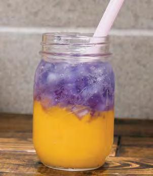 Afer your burger, cool down from the Okinawa heat with a refreshing smoothie. We recommend the colorful and unique Aurora Smoothie, a mango smoothie layered with buterfy pea dyed carbonated water showcasing majestic colors that make it (almost) too prety to drink.