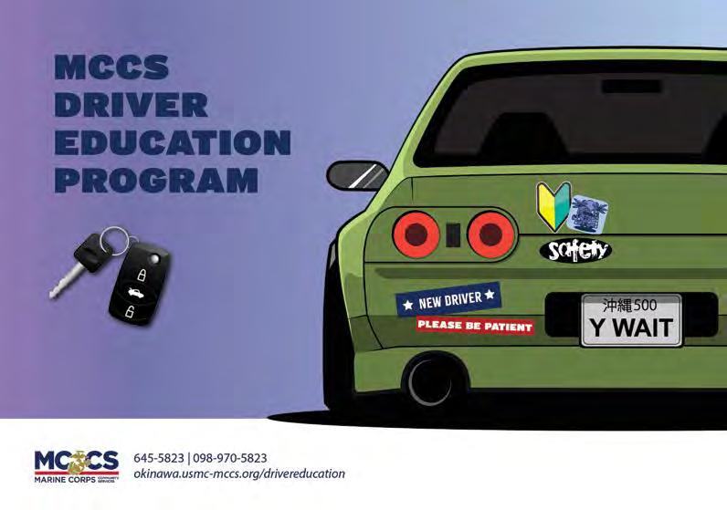 In 2023, MCCS launched a brand-new program tailored towards Marines, Sailors and their family members stationed on Okinawa—the Driver Education Program. Tis program is geared towards aiding active-duty personnel and their family with POV licensing needs, which include American Driver and Trafc Safety Education Association (ADTSEA)/AAA certifed courses with 39 hours of classroom instruction and six hours of behind-the-wheel instruction for those in need.