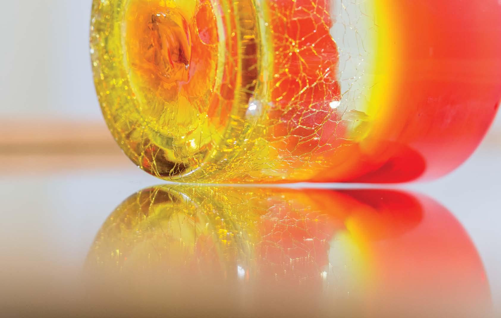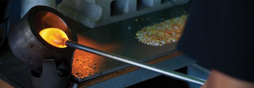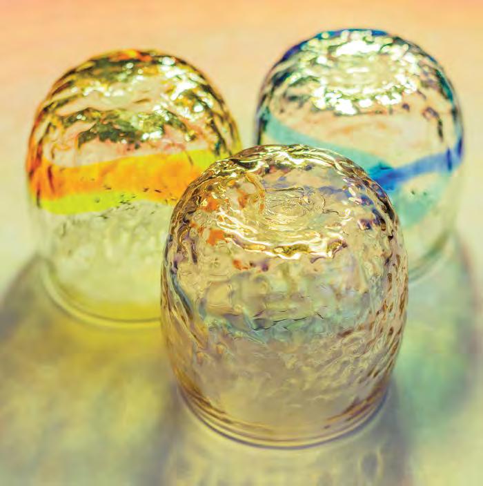 cools…transforming it into an object of lasting beauty. Liquid glass glows with the energy contained within as it slowly transforms into its solid state. Te truly skilled artisan can capture this glow of resplendent vitality in order for its beauty and energy to remain long afer the glass cools…like a moment frozen in time.
