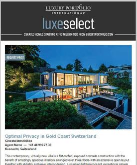 CONFIDENTIAL - MCENEARNEY ASSOCIATES Luxe Select Exclusive email to top luxury agents in the LPI network TARGETED EMAIL MARKETING LuxeSelect is a monthly email option for direct Luxury Portfolio network agent-to-agent promotio. For listings at $3M+; shared to 80,000+ subscribers; featured on the second homepage carousel.