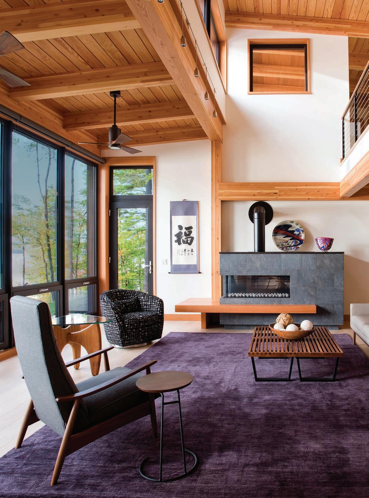 on the cover and page 58 A modern house inspired by Pacific Northwest contemporary design blends into the shores of Lake Sunapee. Bensonwood Home’s unique building techniques and a desire to respect the environment created both stunning views and a home that meets passive-house standards.