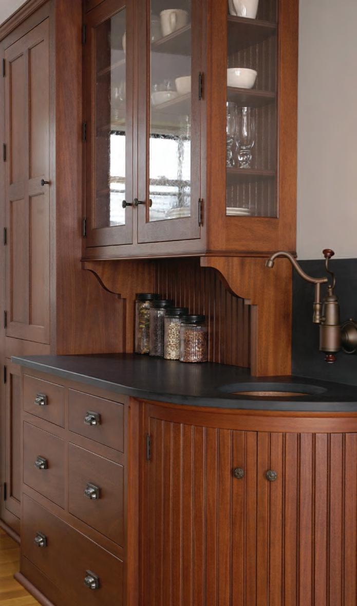 mended solutions for the front yard using a mix of boxwood, hydrangeas, blue spruce and small arborvitaes. On a whim, the couple asked him to take a look at the back. There was a simple courtyard, a bit of lawn with a few garden beds and not much else of interest. There were also piles of granite about the property, as Peter had been collecting granite from old foundations for more than 30 years. “Could you do anything with this?” Brewer recalls them asking.