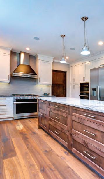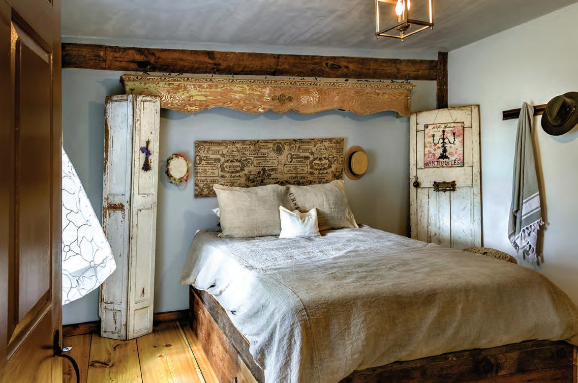 Radiant heating throughout keeps the space warm year-round, as does heat from the morethan-one-hundred-year-old cookstove centered between the living and dining areas. The family uses the stove to cook everything from steaks to roasted marshmallows. “I love thinking about the meals that were cooked on that stove,”
