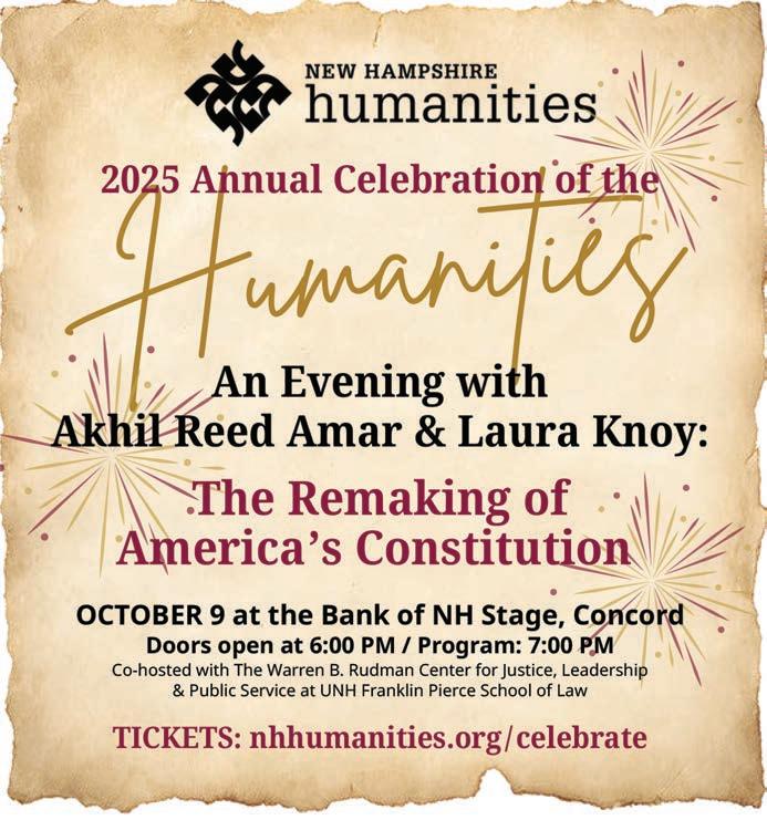Find additional events at nhmagazine.com/ calendar. Submit events eight weeks in advance to Elisa Gonzales Verdi (events@nhmagazine.com) or enter your own at nhmagazine.com/calendar. Not all events are guaranteed to be published either online or in the print calendar. Event submissions will be reviewed and, if deemed appropriate, approved by a New Hampshire Magazine editor.