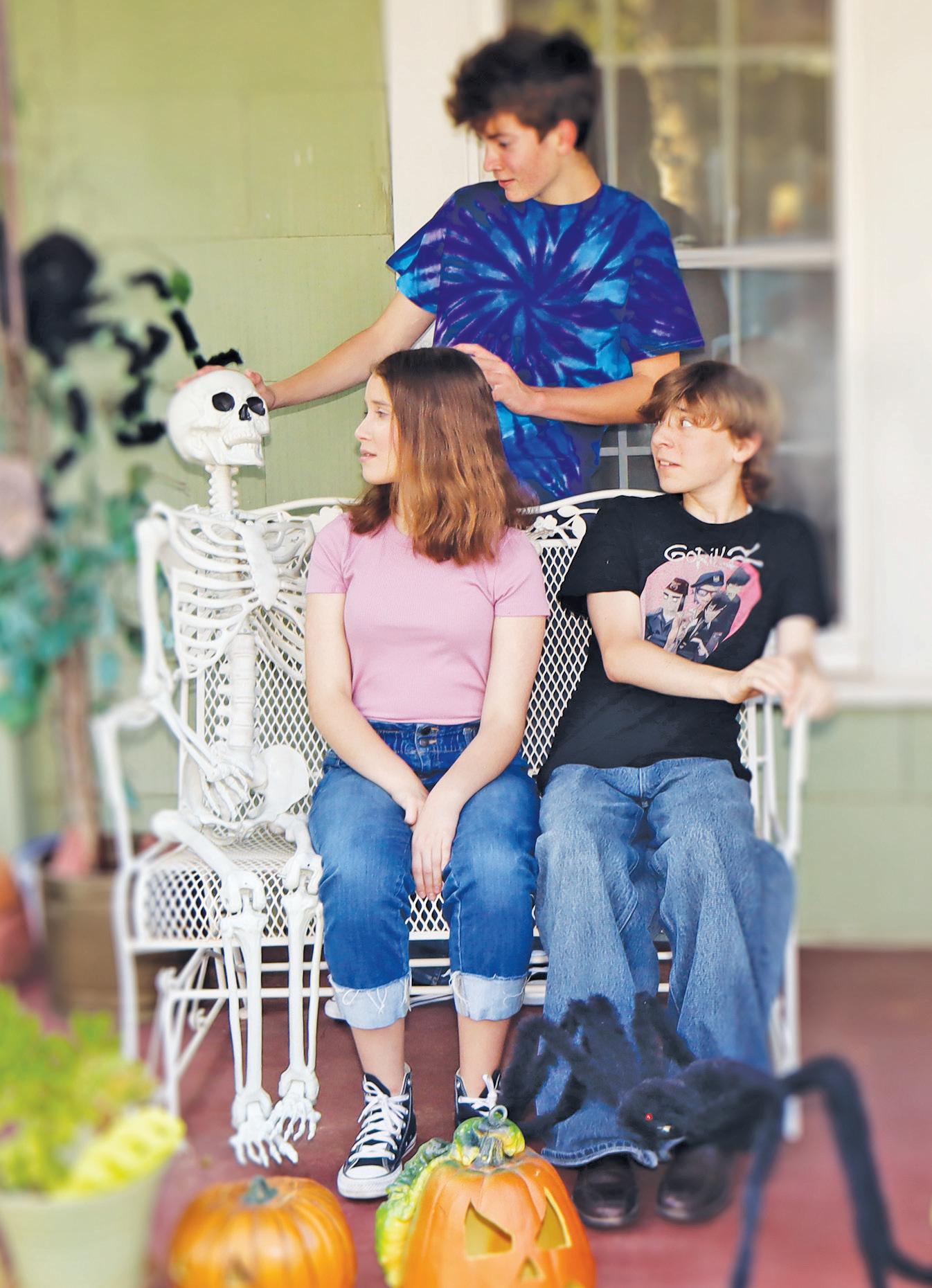 Photo by Allen Schmeltz Young actors Natalie Aguiar Lucas Ellsworth and Desi Roach share their fears in “Haunted Houses.”