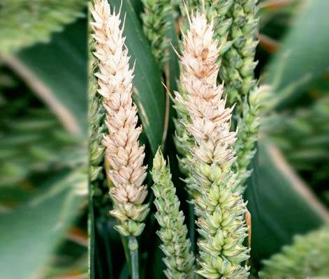 Typically, the first signs of infection are seen in the developing heads – individual florets or parts of heads are often bleached white (see photo) with the rachis (stem in head) brown at the point where these bleached spikelets attach. Infections that occur around flowering result in white grains with a chalky appearance, which are shrivelled and of low weight. With continued moisture during grain filling these affected grains can also develop a pink discoloration.