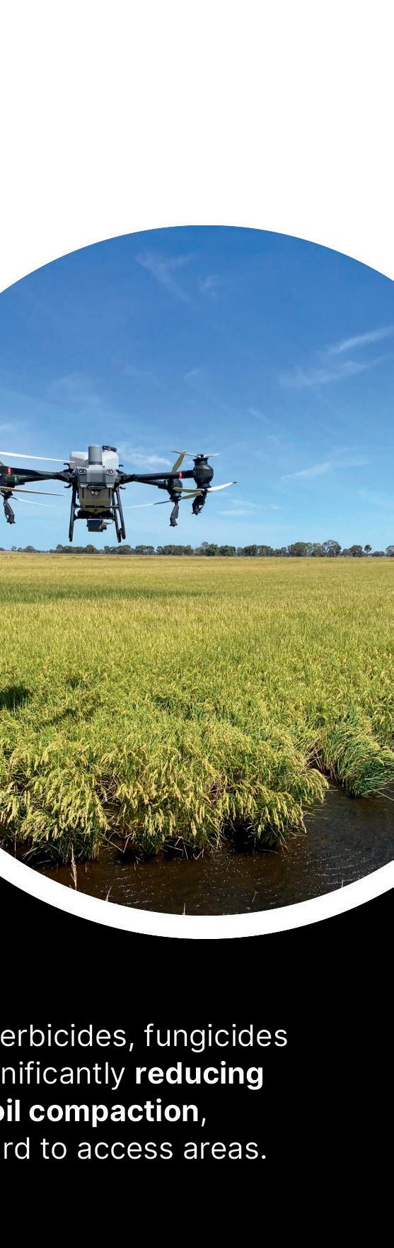 Capable of flying at 36km/h and servicing up to 14ha/h on a good day, the drone provides unmatched access to difficult terrain, making it ideal for areas where traditional machinery struggles.
