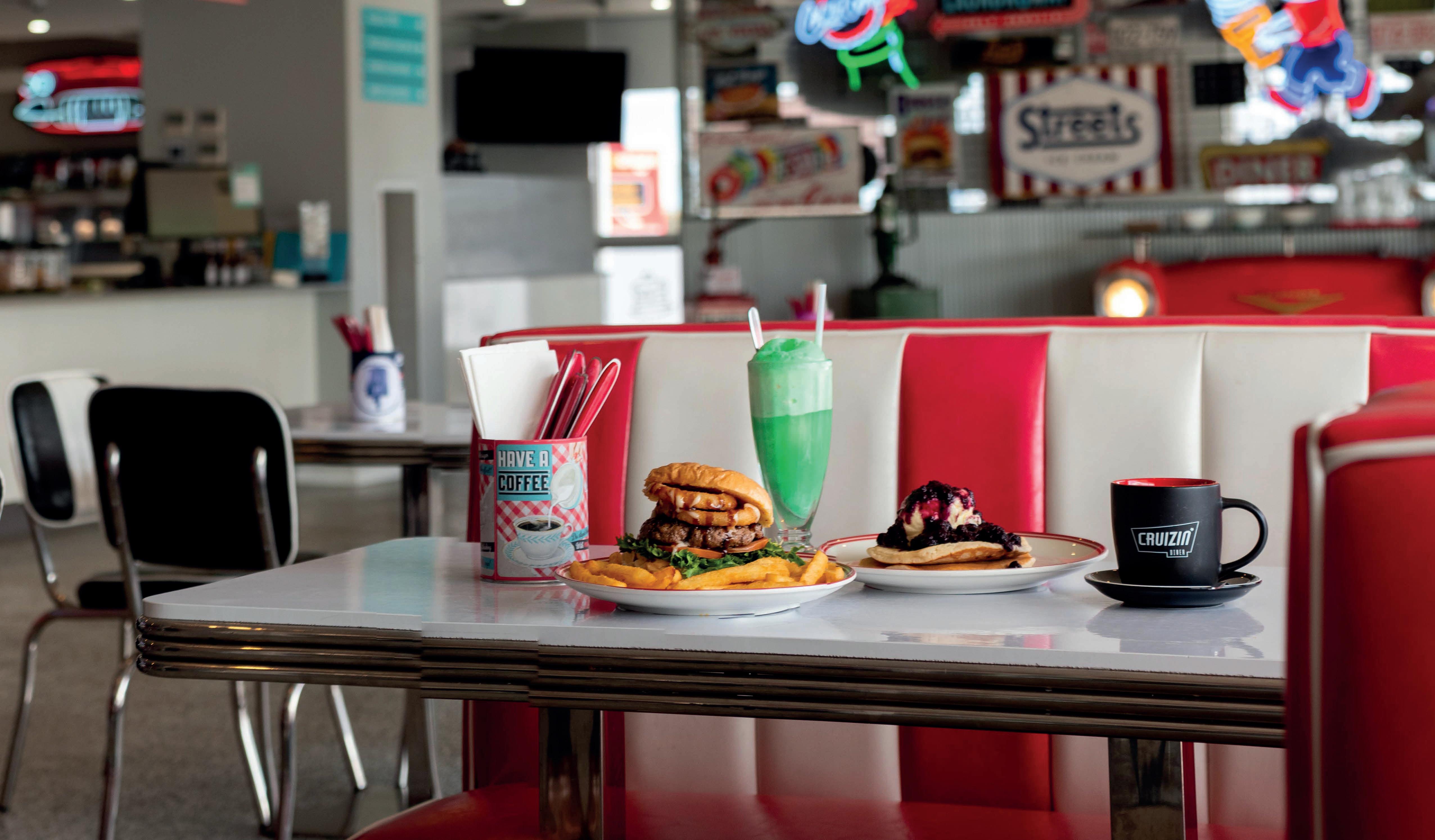 Pop next door to Cruizin* Diner – an eatery with a 1950s nostalgia theme.