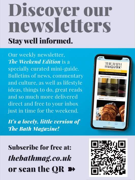 Advertising Sales Liz Grey Email: liz@thebathmagazine.co.uk The Bath Magazine and The Bristol Magazine are published by MC Publishing Ltd. We are an independent of all other local publications