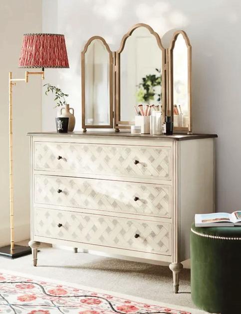 6. Surrounding fabric flair: Draw attention with a decorative border – this overmantle mirror inspired by Italian design instantly elevates a room with its striking frame and tapestry-inspired upholstery.