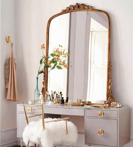 8. Grand gestures: For a dramatic statement, try a large vintagestyle mirror leaning against, rather than fixed to the wall. It’s an eclectic look when combined with modern furniture and can make a room feel so much airier and spacious.