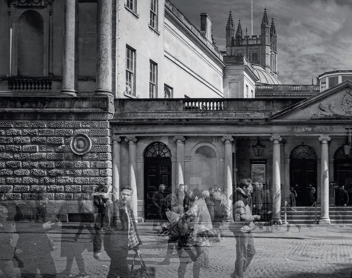 To capture the here and now we profile a collection of photographs on page 44 from Paul J Gooch’s recently published photobook, The City of Bath – Enduring Structures and Transient Lives, which finds a novel way of animating the city for the present day.