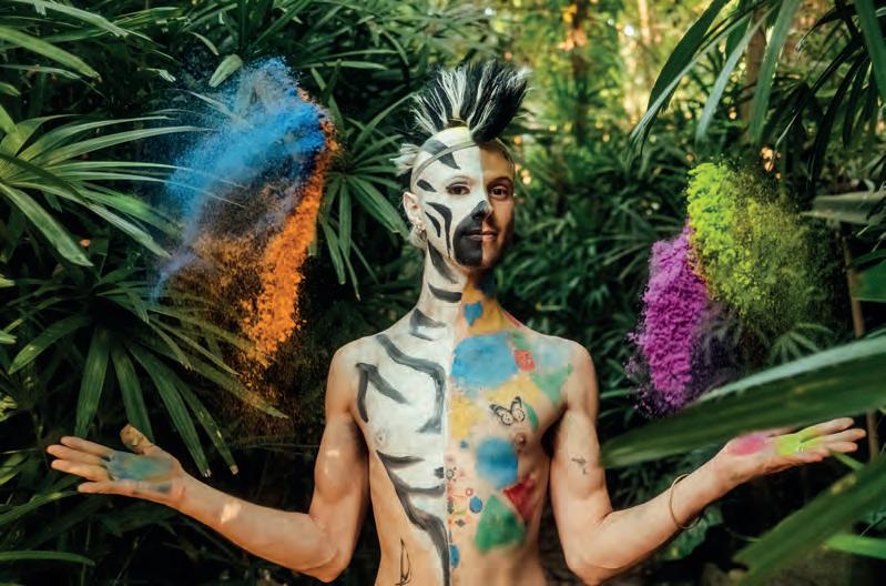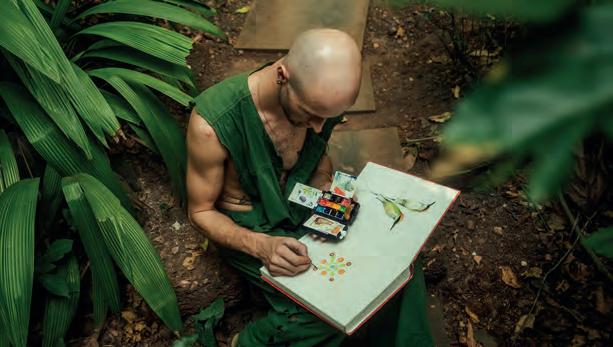 First stop: artist Brook Tate’s tent. I hope you’re ready to take an otherworldly trip inside his dreamscape and find out how performing as a multi-dimensional zebra helped him devise a colour- and shapebased maths problem-solving method that’s landing on the school desks of primary school children across the country this month. Intrigued? He’s ready – sketch book in hand – to explain it all on page 22. Deeper in the woods, page 44, there’s a giant Mirrorbox from the mind of Alison Larkman. Step inside and you’ll hear stories from voices who can’t join the festival in person, but who shine all the brighter within its mirrored walls for being heard.