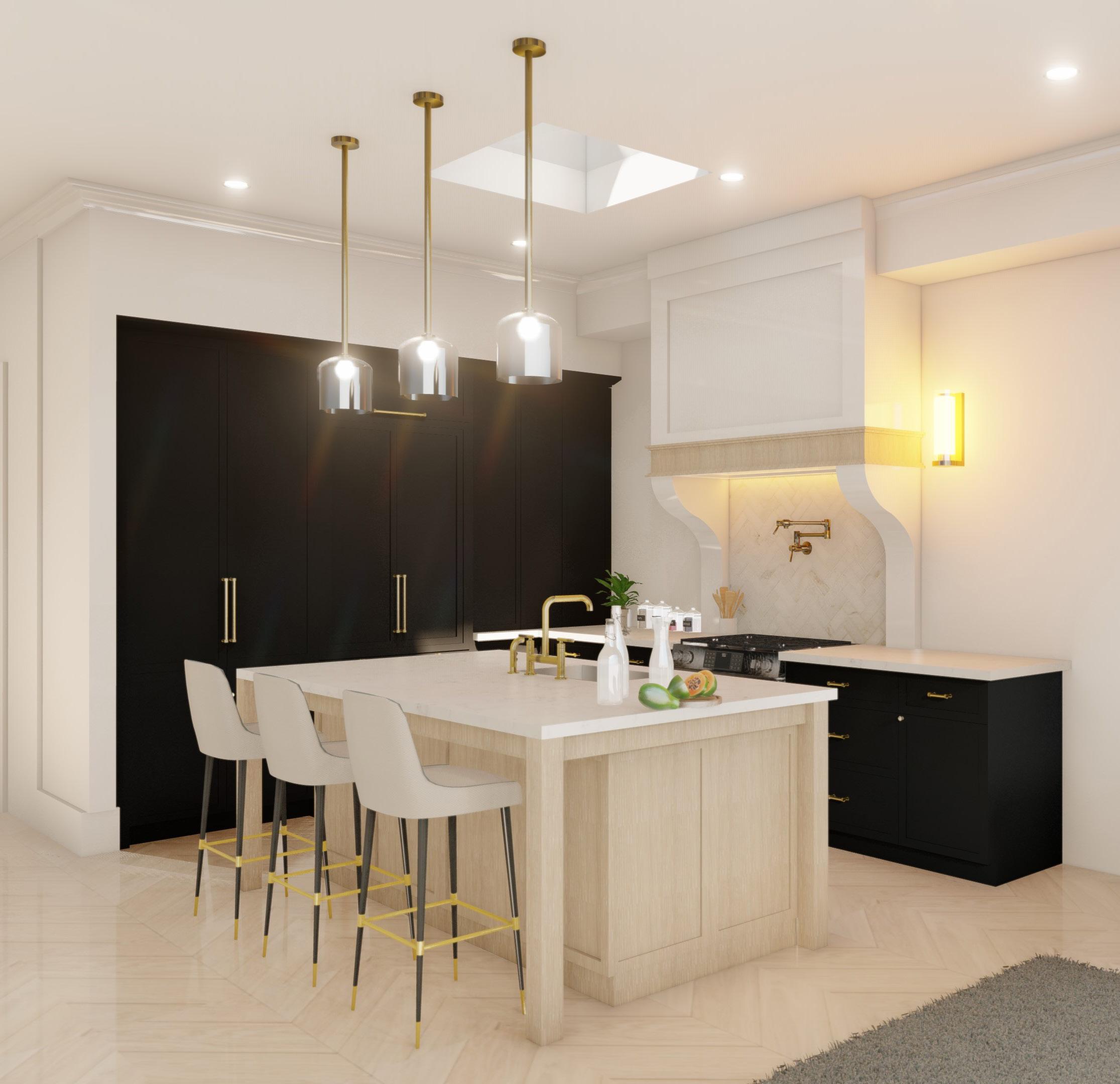 way to timeless elegance. Custom, all-wood cabinetry, herringbone floors,