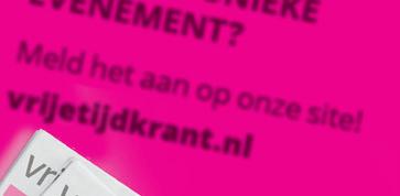 NB: Drukfouten voorbehouden. Evenementen en data zijn onder voorbehoud. De agenda wordt met veel zorg samengesteld, het is echter altijd mogelijk dat er wijzigingen plaats vinden of dat een evenement niet doorgaat. Kijk daarom altijd op de website van het evenement voor meer informatie. Vrijetijdkrant wijst elke aansprakelijkheid voor schade die direct of indirect het gevolg is van een vermelding af.