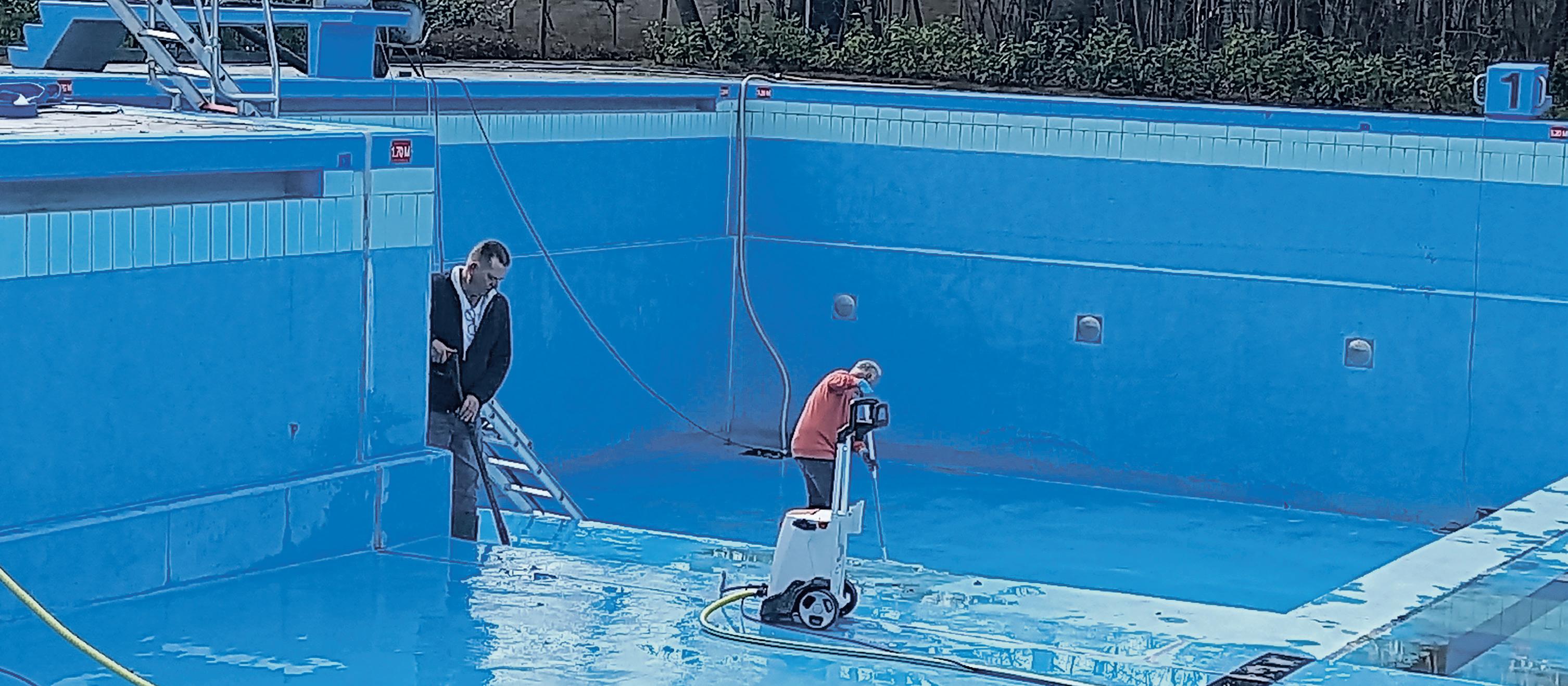zo’n twee weken voor de opening het water erin; daar gaan wel een paar dagen overeen! Het op peil brengen van de juiste zuurgraad en het chloorgehalte komt nauw kijken. Daar hebben onze technische collega’s Arjan en Miranda wel even werk aan.