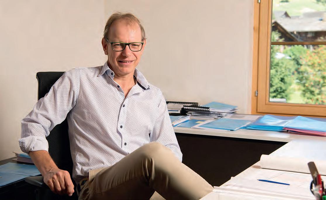 Discussions with architects from the region are informative. They reflect the current economic climate in the building sector and in the real estate industry. In fact, they do more than that: they reveal how architects see their joint responsibility for the development of the landscape – a landscape which is highly praised and appreciated by visitors to these parts. 56 year old architect, Max Rieder, knows what he is talking about. Over the course of his career, he has worked for several firms of architects in the Saanenland and elsewhere. In 2 008, he moved into his office facility in the centre of Saanen with 16 employees and in 2002, he founded the companies Rieder Architektur AG and Rieder Bau und Immobilien AG. The married father of two children has also previously held the post of Vice President of Gstaad Saanenland Tourism. He enjoys a good worklife balance and accompanies friends on ski and mountain biking tours, as well as paragliding or diving sessions. Max Rieder fully supports the stringent building code of the local authority of Saanen for various reasons and
