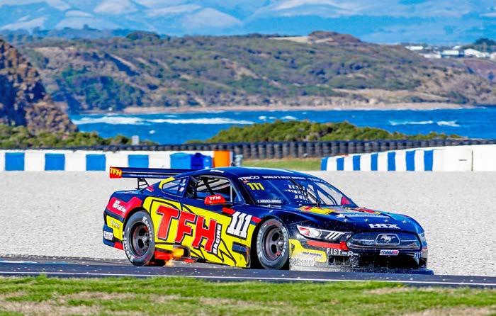 Miedecke Motorsport scored a worldwide first with its GT4 Ford Mustang with victory by George Miedecke and Rylan Gray in both legs of the first round of the GT4 Australia championship at Phillip Island last month (above)..