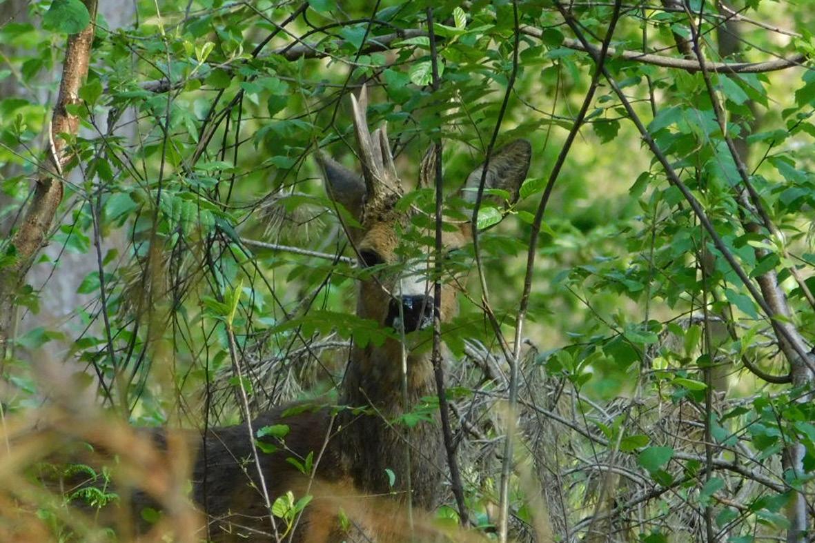 Op 1 mei zag ik deze mooie reebok in Geel-Bel. De grijze snuit en forse lichaamsbouw wijzen op een al wat oudere bok. Omdat hij aan de ene stang 4 enden en aan de andere stang 3 enden heeft, spreekt men van een ‘onregelmatige 8-ender’. Het hoogste aantal uiteinden (‘enden’) wordt verdubbeld om aan te geven welk gewei het is.