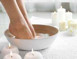 Strain the spicey brew into a foot bath. Add cold water to make the temperature comfortable and keep the feet in the bath for as long as the water is warm.