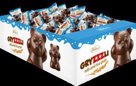 Gryzzzli, our bear-shaped chocolates are just one of a kind. These teddy bears full of sweetness have a magical power to attract ! Have a bite and enjoy the milky filling with grains of puffed rice. The unique sweetness of the chocolate bear will make you want to have it always with you. Every single praline is in hermetic flowpack wrapper Product is available in following formats: 200g bag, 1kg bag and different bulk formats.