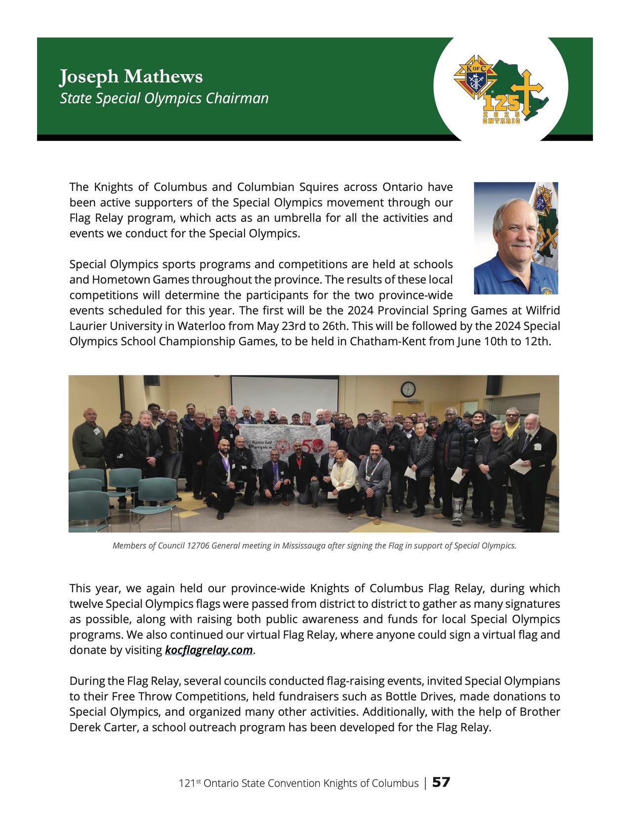 KNIGHTS OF COLUMBUS | ONTARIO STATE BULLETIN |SPRING 2024 57
