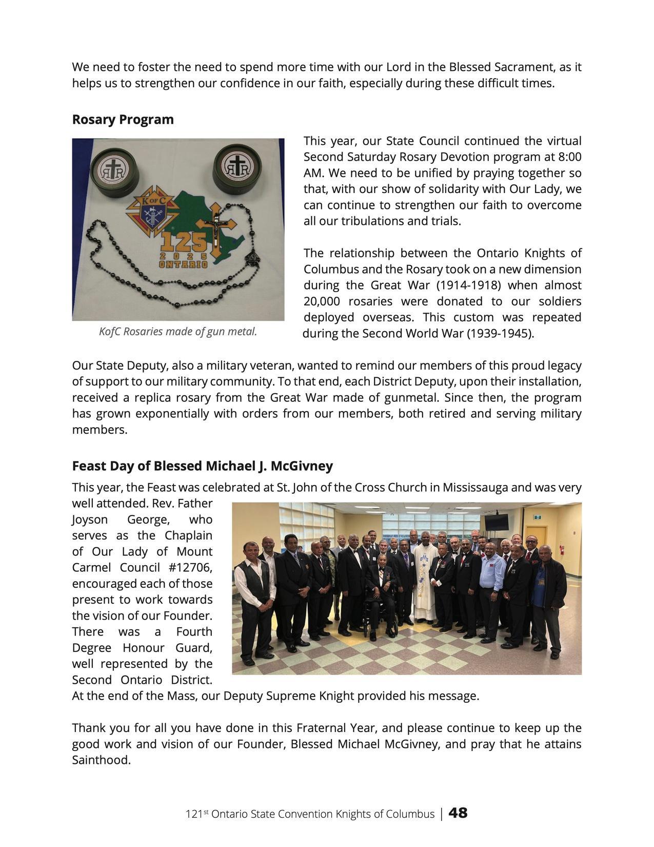 KNIGHTS OF COLUMBUS | ONTARIO STATE BULLETIN |SPRING 2024 48