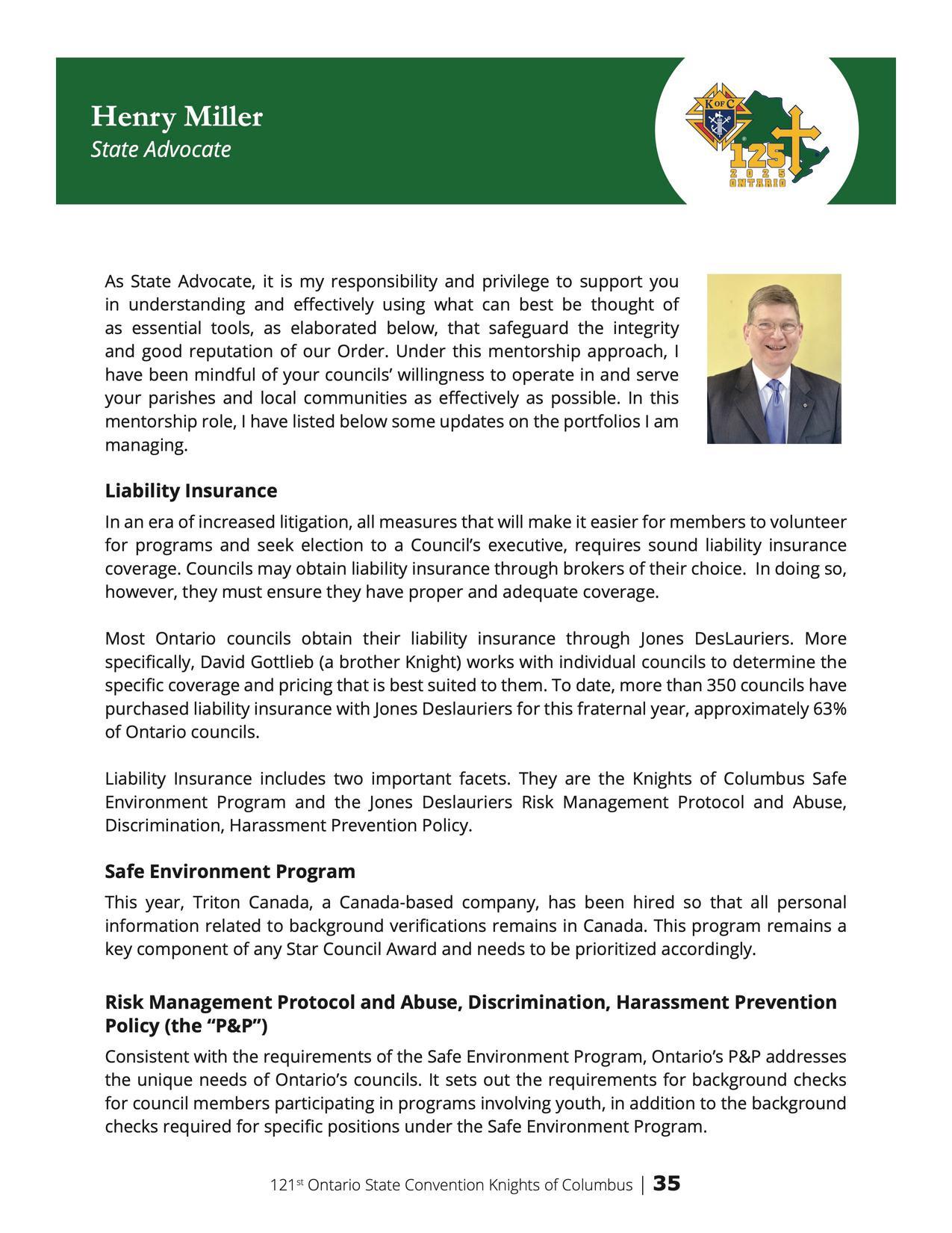 KNIGHTS OF COLUMBUS | ONTARIO STATE BULLETIN |SPRING 2024 07 34