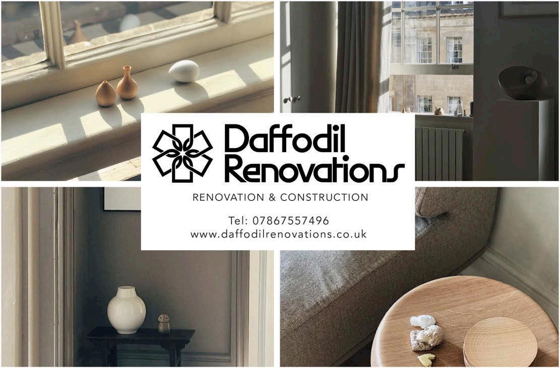 lair Stron Interior esi n is a o ti e reative company based in Bath, providing a wide range of services for oth residential and ommer ial lients. er ortfolio of projects includes the design, project coordination and sourcing for some of Bath’s most beautiful residences, as well as hotels s orts l s o es and other ommer ial venues. Contact Clair on 07855 797311 or 01225 426905; www.clairstrong.co.uk