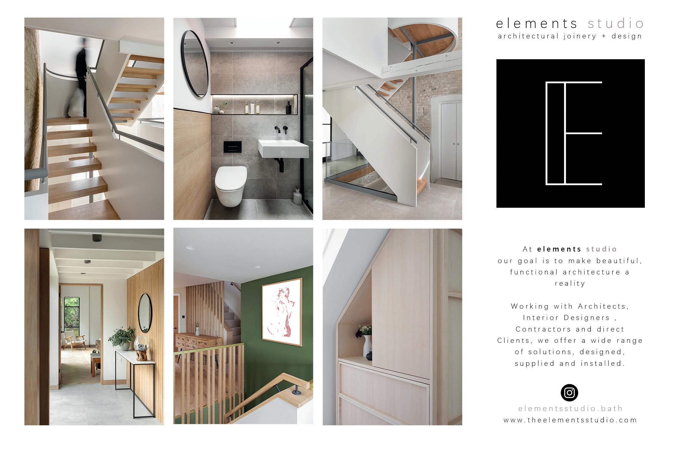 ELEMENTS STUDIO, A SISTER COMPANY OF WRAXALL BUILDERS, creates functional architectural elements by working directly with designers and contractors to deliver highquality finishes on time and on budget. theelementsstudio.com | @elementstudio.bath