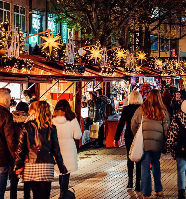 n every riday in ecember inzels each arket becomes inzels estive ridays, with producers and traders cooking up street food to sustain you during Christmas shopping, while the arbourside arket on ednesday, Thursday, aturday and unday is bound to put a festive spin on proceedings. www.visitbristol.co.uk