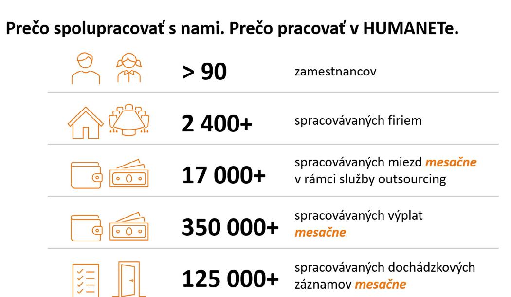 Ponúka množstvo funkcionalít, ktoré sme za tridsať rokov zapracovali a sú dostupné našim zákazníkom už v štandardnom riešení. Ceny mesačných platieb sú priaznivo nastavené, pričom firmy platia len za to, čo skutočne využívajú. Riešenie sa tak stáva dostupné aj pre menšie firmy. Trendom je, že zamestnanci majú prístup k informáciám, ktoré ich zaujímajú, bez potreby pýtať sa vedúcich alebo personalistu. V mobilnej aplikácii Humanet nájdu zamestnanci výplatné pásky, informácie o dochádzke, zostatkoch dovolenky či čerpanie lekára, kedykoľvek potrebujú.